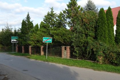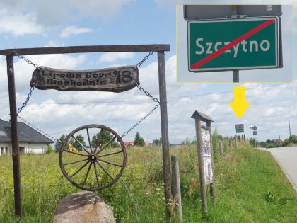 Granica między Szczytnem a wspomnianą miejscowością przebiega osobliwie. Jak widzimy na fot. 5, na pierwszym planie mamy ozdobną tablicę zapraszającą do jednego z domostw Lipowej Góry. Kawałek dalej znajduje się znak drogowy informujący o opuszczeniu obszaru Szczytna… Podobne zamieszanie pojawia się na równoległej drodze biegnącej początkowo wzdłuż szczycieńskiego cmentarza. Ulica Mazurska przechodzi w pewnym momencie w Lipową Górę Wschodnią, ale jeszcze przed tabliczką z przekreśloną nazwą Szczytna znajdują się domy przypisane już tej drugiej miejscowości. Inną wsią graniczącą ze Szczytnem są Korpele. Wjazdów do tej miejscowości jest sporo, a jeden z nich (tuż za ulicą Leśną) wygląda jak na fot. 6. Odchodząca w prawo uliczka pełni najwyraźniej funkcję bufora, co się zdarza. Dziwniej sprawa będzie się przedstawiała, jeśli za chwilę zawrócimy w stronę miasta. Tabliczki z nazwami obu miejscowości stoją na wysokości tych z fot. 6, ale z tego wynika, że buforem po tej stronie jezdni jest widoczne na fot. 7 domostwo. Przypisane, co sprawdziliśmy, Korpelom, jednak na podwórko wjeżdżamy - według oznakowania - w Szczytnie…
