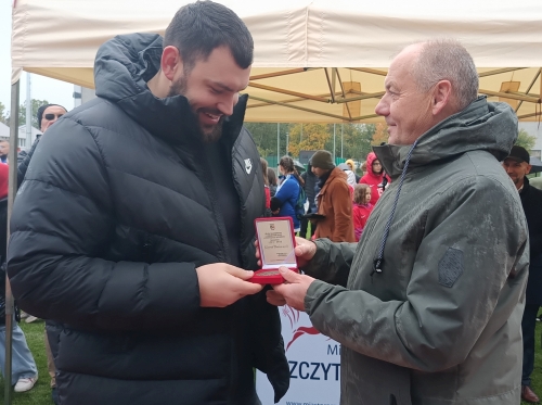 W trakcie uroczystości pamiątkowy medal z okazji 300-lecia nadania Szczytnu praw miejskich otrzymał od burmistrza kulomiot Konrad Bukowiecki. Sportowiec podkreślał, że wybudowanie w jego rodzinnym mieście stadionu z prawdziwego zdarzenia było od dawna jego wielkim marzeniem.