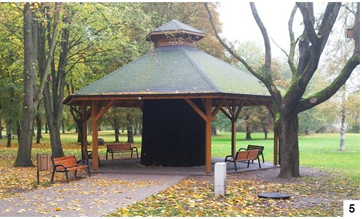 Minitężnia w Szczytnie zakończyła trzeci sezon swojego funkcjonowania (fot. 5). Ślady po spływającej solance jeszcze zostały, ale zgodnie z regulaminem urządzenie miało działać tylko do 15 października – na kolejne uruchomienie naszej tężni trzeba poczekać do połowy kwietnia przyszłego roku. Odnosimy wrażenie, że w minionym już sezonie frekwencja była nieco mniejsza niż wcześniej. Nie jest to raczej efekt nacieszenia się tężnią przez poprzednie dwa lata, a skutek mało zazwyczaj sprzyjających warunków atmosferycznych. Zniszczeń na ławkach (przed sezonem odnowionych) widzieliśmy w ostatni weekend jakby mniej niż w poprzednich sezonach, co nie znaczy jednak, że ich w ogóle nie ma. Mimo obecności kamer wciąż można tu było sobie np. wjechać rowerem pod zadaszenie, wypić coś mocniejszego, zapalić czy usiąść w nieodpowiedni sposób z butami brudzącymi deski ławek. Niestety, niektórych wychować trudno, a o wyciąganiu konsekwencji w stosunku do osób, których niewłaściwe zachowanie wychwyciły chyba przecież kamery, jakoś nie słyszeliśmy... Tężnie większe i mniejsze powstają w iluś miejscach w naszym województwie. Dzięki nim ma się poprawić stan zdrowia mieszkańców, powstają nowe strefy relaksu, a turyści mają ewentualny powód, by dane miasto odwiedzić. Z realizacją inwestycji pojawiają się jednak niekiedy różnorakie problemy. Tak było w Szczytnie, tak jest obecnie w Ełku. W roku 2024 zwyciężył projekt tężni, która miała stanąć nad Jeziorem Ełckim (fot. 6 – www.elk.pl). Jak wynika z wizualizacji, obiekt ma być większy od naszego, z czym wiąże się odpowiednio pomnożony koszt inwestycji (650 tys. zł). Kończy się powoli rok 2025, a początków budowy nie widać, o czym przypomniała niedawno regionalna telewizja. Jak możemy przeczytać i usłyszeć, wszystko przeciągają kwestie biurokratyczne. Nie tylko u nas pojawiają się problemy z terminowością inwestycji powstających w ramach budżetu obywatelskiego...