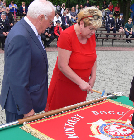 Tam w obecności pocztów sztandarowych m. in. z Dąbrów, Klonu Faryn, Wilamowa, a także Ostrołęki i Myszyńca, wręczono nowy sztandar jednostce OSP Rozogi, której fundatorem jest miejscowa społeczność, a rodzicami chrzestnymi lokalni przedsiębiorcy Danuta Zagożdżon i Grzegorz Winiarek.