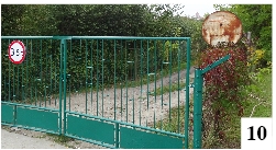 Przy wejściach/ wjazdach do ogródków działkowych przy ul. Kochanowskiego w Szczytnie zawisły ostatnio tabliczki, ograniczające tonaż wjeżdżających tu pojazdów. Nowość czerwono-białych znaków ostro kontrastuje ze starymi tabliczkami (fot. 10) , które pozostały w paru miejscach. Kształt wskazuje na znak zakazu, ale czego dotyczy i jaki przekaz znajduje się na tabliczce uściślającej, odczytać już trudno.