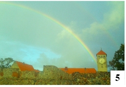 Na intensywniejsze opady deszczu wciąż musimy poczekać. W minionym tygodniu mogliśmy za to oglądać piękną podwójną tęczę, która kojarzy się przecież z rozpogodzeniem po obfitych opadach. Dwoma łukami (ze słabiej widocznym górnym) otoczyła stolicę naszego powiatu (fot. 5).