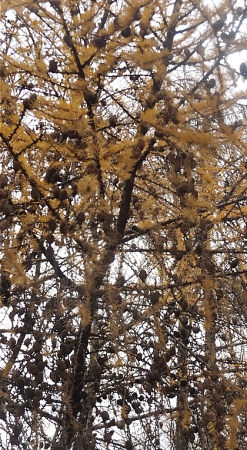 Mamy również w różnych punktach miasta całkiem okazały drzewostan choinek żółtych. (fot. 8) To modrzewie, które wśród drzew iglastych wyróżniają się jesienną zmianą barwy, a później traceniem igieł.