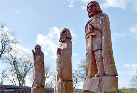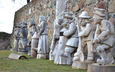 Co ciekawe, mamy nieopodal małą galerię rzeźb, które stoją w fosie od strony ul. Spacerowej, ale figury te, choć liczne, sprawiają wrażenie jakby specjalnie ukrytych. Posadowione na dnie fosy, dużo poniżej poziomu ulicy są po prostu słabo widoczne. Nie są też dość duże, więc na pasaż raczej się nie nadają. Dużo większe postacie, jak na skalę naszego miasta wręcz kolosy, stoją gdzie indziej – na ruinach zamkowych. Są to trzej zacni i pewnie bitni rycerze Teraz oczyma wyobraźni przenieśmy je na pasaż – efekt byłby niemały.