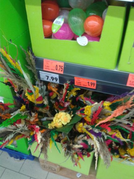 Okres świąteczny ma również swój wymiar handlowy. W latach ubiegłych ostatnie dni przed Wielkanocą kojarzyły nam się z tłumami w sklepach spożywczych. Jakież było nasze zdziwienie, gdy w Wielką Sobotę, nie aż tak wcześnie rano, koszyki (których liczbę przecież wyraźnie ograniczono) pod „Kauflandem” czekały na klientów – a nie odwrotnie. Można odnieść wrażenie, że jakoś inaczej wyglądało kupno artykułów niespożywczych. W minionym tygodniu mogliśmy jeszcze nabyć palmy, najwyraźniej na przyszły rok (fot. 5) . Na chętnych czekały też stosy śmigusówek, czyli niewielkich jajeczek do poniedziałkowego polewania się wodą. Opuszczanie domu, by o wielowiekowej tradycji przypomnieć także np. przypadkowym przechodniom, nie wchodziło raczej w grę, stąd i śmigusówek używano na ogół niezbyt wielkich rozmiarów.{akeebasubs !*}