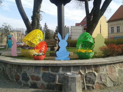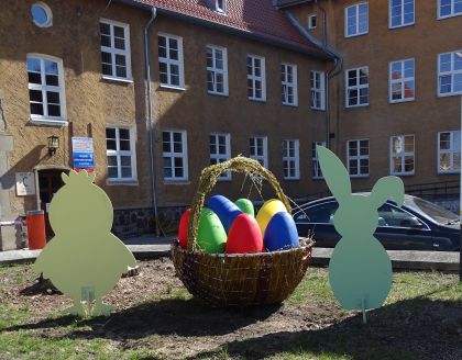 Gdy tuż przed świętami służbowo przechadzaliśmy się głównymi ulicami miasta, rozglądając się nerwowo, czy nasze przemieszczanie się nie zostanie potraktowane przez odpowiednie służby jako wykorzystywanie sytuacji, by się zbyt przesadnie dotlenić, zwróciliśmy uwagę na pewną rzecz. Mieliśmy duży problem ze znalezieniem przy wejściach do sklepów i różnych punktów usługowych życzeń dla klientów i świątecznego wystroju. Niemal całą powierzchnię szyb wypełniły apele i instrukcje związane z przestrzeganiem zasad bezpieczeństwa. Sytuację w przestrzeni publicznej próbowały ratować nasze władze. Zarówno na placu Juranda (fot. 6), jak i na dziedzińcu ratusza (fot. 7) stanęły barwne instalacje przypominające nielicznym przechodniom, że Wielkanoc to jednak radosne święto. Mimo czasów, w których przyszło nam je przeżywać…