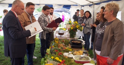 Więcej emocji wzbudził drugi konkurs, w którym toczyła się rywalizacja kulinarna. Do tytułu najsmaczniejszej potrawy z grzybów zgłoszono 13 dań. Pracami jury po raz kolejny kierował Michał Denesiuk, nauczyciel przedmiotów zawodowych w ZS nr 2 w Szczytnie, znawca i miłośnik kuchni. Wspomagali go m.in. kucharze z elbląskiego klubu szefów kuchni i burmistrz Grzegorz Zapadka. Szef jurorów chwalił uczestników za pomysłowość i nawiązywanie do potraw regionalnych. - Te, których dziś próbowałem, przypominały mi dania przyrządzane przez moją babcię – cieszył się Michał Denesiuk. Podkreślał, że rywalizacja w tym roku była bardzo duża, a wszystkie przygotowane potrawy bardzo smaczne. Ostatecznie najwyższe oceny otrzymały kartacze z kurkami przyrządzone przez Józefę Oleśkiewicz. Drugie miejsce przyznano Martynie Zyśk za placki z cukinii z borowikami i pokrzywą. Trzecie miejsce zdobyła Katarzyna Parciak, która przyrządziła placki ziemniaczane z grzybami ze śmietaną i kawiorem.