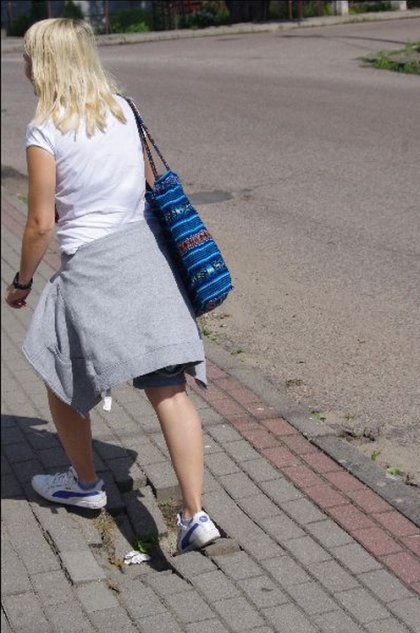 najbliższej okolicy. Na dożynki w Jedwabnie skusiła się bawiąca w Szczytnie pewna turystka z Wejherowa. Do domu powinna zabrać z takiego wyjazdu tylko miłe wspomnienia, ale… Podczas święta plonów mogła ją spotkać niemiła niespodzianka, np. skręcenie kostki. Powodem było niezabezpieczone zapadlisko na chodniku przy głównej ulicy Jedwabna, czyli 1 Maja (fot. 5), blisko dożynkowego placu. Na szczęście do żadnego wypadku nie doszło.