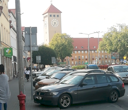 Dwa miesiące temu pisaliśmy o poprawieniu oznakowania niektórych stref postojowych w Szczytnie. Właściwe ustawienie znaków nie poszło w parze z wyznaczeniem odpowiedniej długości postoju przy ul. Odrodzenia – po korektach mieściły się tam tylko w zasadzie dwie taksówki. Ostatnio dokonano kolejnej poprawki. Skrócono ogólnodostępną zatokę postojową, a bezpośrednio za nią zaczyna się odpowiednio wydłużony postój taksówek. Informuje o tym oznakowanie, które widzimy od tyłu (fot. 9). Kierowca parkującego na pierwszym planie kombi albo najwyraźniej zatrzymał się tu „po staremu”, albo miał problemy z czytaniem znaków ze zrozumieniem…