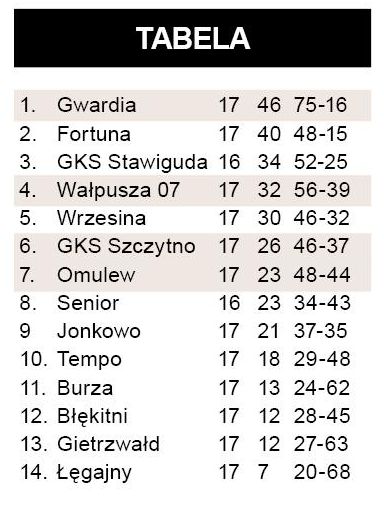 Ostatnia kolejka nie była zbyt szczęśliwa dla naszych drużyn. Zwycięstwa zanotowali jedynie liderzy: szczycieńska Gwardia i Perkun Orżyny. Porażki do swoich kont dopisały oba zespoły GKS-u.