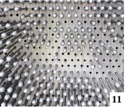 Największą popularnością w opisywanym miejscu cieszy się chyba ścianka przytulanka, o której kiedyś w „Kronice” wspominaliśmy. Niestety, jest ona naukową zabawką najbardziej zniszczoną. Prętów, służących do przesuwania, sukcesywnie ubywa (fot.11) . Kilka nakrętek widzieliśmy pod samym urządzeniem, a jeden z prętów znaleźliśmy aż przy armatce powietrznej.