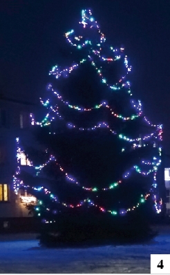 O ozdobach w centrum Szczytna pisaliśmy w poprzednich numerach. O to, by stolica powiatu i jej okolice wyglądały w okresie świątecznym ładnie, dbają jednak nie tylko władze samorządowe i odpowiednie służby. Efektowną iluminację mamy i na blokowych balkonach (fot. 2) , i w obejściach domków jednorodzinnych (fot. 3). Okazałej choinki doczekał się nie tylko szczycieński plac Juranda. Jeszcze wyższe drzewko – teraz przystrojone – rośnie sobie w centralnej części Kamionka (fot. 4).{akeebasubs !*}