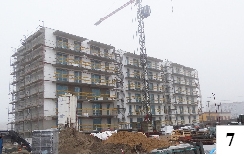 Windy pojawiły się w niedawno wzniesionych w Szczytnie budynkach. Mają one bryłę zdecydowanie atrakcyjniejszą od tej z bloków budowanych za komuny. W niektórych z nich zwiększyła się także liczba kondygnacji. Oto w bloku na ul. Dąbrowskiego, który za kilka miesięcy powinien być gotowy do użytku, pięter, jak widać (fot. 7), będzie pięć (kondygnacji – sześć).