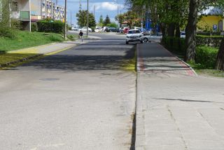W minionym roku na tej ulicy kładziono instalację gazową. O ile po niedawnym remoncie nawierzchni zasadniczo już posprzątano, to po pracach związanych z ubiegłorocznym przedsięwzięciem zostały pewne niepotrzebne ślady. Widzimy je na fot. 5. To bariery drogowe, które posłużyły jako zabezpieczenia przy wykopach.