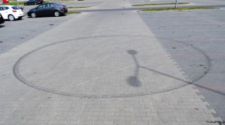Tragiczny wypadek, do którego doszło w Szczytnie prawie trzy tygodnie temu, nieustannie prowokuje do rozważań nad stanem świadomości części dorosłych osób. Całkiem pokaźna rzesza dużych chłopców (dużych zmotoryzowanych dziewczynek jest wyraźnie mniej) nieustannie musi podkreślać swoją męskość w mocno nieprzemyślany sposób. A to samochodowo – muzyczne (konieczne „umpa, umpa” słyszane na co najmniej 100 m) na placu Juranda – a potem wyruszenie w miasto, a to zostawienie jakichś fajnych znaków na parkingu (fot.11). Wystarczy chwila, błysk superumiejętności – i mamy w Szczytnie kolejne rondo. Zimą, jeśli niebiosa ześlą śnieg albo chociaż pozwolą na utrzymanie się lodu, trzeba koniecznie na nieużytki na Ostrołęckiej (fot. 12) – tam to dopiero można poczuć wolność na czyimś gruncie. Niestety, tej zimy niebiosa łaskawe nie były – i depresja części mistrzów kierownicy gotowa. Bo dlaczego nie ma tego lodu?