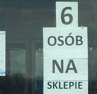 Zastanowił nas także znacznie większy napis na wejściu do jednego ze sklepów w Pasymiu (fot. 7). Miałby to być jakiś znak ostrzegawczy? Skierowaliśmy wzrok ku górze – i nic, żadnych ludzi na dachu (fot. 8). Najwyraźniej autor miał na myśli dopuszczalną liczbę klientów w sklepie. Cały czas trwa przecież pandemia, o czym na moment zapomnieliśmy…