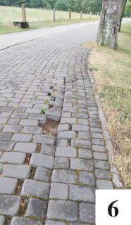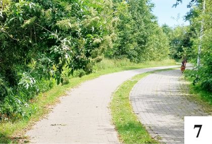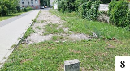 Jakiś czas temu przeprowadzono niewielką inwestycję na terenie przylegającym do ścieżki. Wykonano odnogę w stronę ul. Pasymskiej, porządnie ułożono kocie łby na części przeznaczonej dla samochodów. Niestety, pojazdy pod dawną kolejową przepompownię nie zajeżdżają (parę lat temu działał tam pub) i droga zarasta, co nie wygląda zbyt atrakcyjnie (fot. 8).