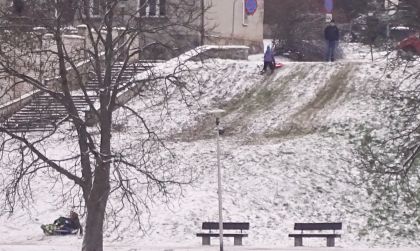 Chyba najdłuższy w historii okres feryjny właśnie zbliża się do końca. Odpoczynek od zdalnej nauki rozpoczął się kilka dni przed Bożym Narodzeniem i potrwa do końca bieżącego tygodnia. Wypoczynek był inny niż w minionych latach – bez wyjazdów, a nawet bez swobodnego (przez połowę ferii) wychodzenia z domu przez dzieci i młodzież do lat 16. W miniony weekend zrobiło się już u nas zimowo. Przypomniano sobie o nieużywanych w poprzednim sezonie sankach i innych sprzętach służących do zjeżdżania. Choć parę dni temu śniegu było niezbyt dużo, każdy kto chciał, mógł znaleźć sobie jakąś górkę i zaliczyć zjazd – z obowiązkowym upadkiem (fot. 6). A czym byłaby zima bez ulepionych bałwanków? Być może dość skromna pokrywa śnieżna przyczyniła się do tego, że podobnych figur nie widzieliśmy zbyt wiele, ale pod jednym ze szczycieńskich bloków zobaczyliśmy bałwanka z prawdziwego zdarzenia – no, może bez wiaderka na głowie, ale za to z nosem z marchewki i innymi dodatkami (fot. 7).