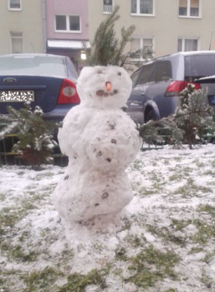 Chyba najdłuższy w historii okres feryjny właśnie zbliża się do końca. Odpoczynek od zdalnej nauki rozpoczął się kilka dni przed Bożym Narodzeniem i potrwa do końca bieżącego tygodnia. Wypoczynek był inny niż w minionych latach – bez wyjazdów, a nawet bez swobodnego (przez połowę ferii) wychodzenia z domu przez dzieci i młodzież do lat 16. W miniony weekend zrobiło się już u nas zimowo. Przypomniano sobie o nieużywanych w poprzednim sezonie sankach i innych sprzętach służących do zjeżdżania. Choć parę dni temu śniegu było niezbyt dużo, każdy kto chciał, mógł znaleźć sobie jakąś górkę i zaliczyć zjazd – z obowiązkowym upadkiem (fot. 6). A czym byłaby zima bez ulepionych bałwanków? Być może dość skromna pokrywa śnieżna przyczyniła się do tego, że podobnych figur nie widzieliśmy zbyt wiele, ale pod jednym ze szczycieńskich bloków zobaczyliśmy bałwanka z prawdziwego zdarzenia – no, może bez wiaderka na głowie, ale za to z nosem z marchewki i innymi dodatkami (fot. 7).