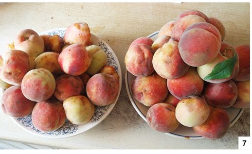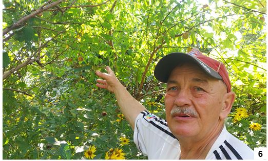 Początek roku szkolnego oznacza u nas także krótki sezon na brzoskwinie. Wiemy, że te egzotyczne owoce rosną w naszym powiecie u co najmniej kilku osób. Jedną z nich jest animator sportu, były sędzia piłkarski, a obecnie radny Zbigniew Dobkowski. Minisad pana Zbyszka ma swoje ograniczenia powierzchniowe, stąd drzewek od pewnego czasu już nie przybywa, ale na początku września brzoskwinie się pojawiają. W ubiegłych latach drzewka owocowały obficie i można było zebrać nawet około tysiąca sztuk. W tym roku, jak przyznaje pan Zbyszek, było już znacznie skromniej, ale jak obliczył, zebrał około 200 owoców, czyli wciąż niemało. Negatywny wpływ miała pogoda - zbyt dużo deszczu i za mało słońca. Wystarczyło, że mocniej pokropiło i brzoskwinie od razu spadały. Gdy odwiedziliśmy radnego w środku minionego tygodnia, na drzewach owoców (nie zawsze dojrzałych) zostało niewiele (fot. 6). Te, które zebrał przy kilku podejściach (fot. 7), zostały skonsumowane, także przez znajomych. A ponadprogramowe można przerobić np. na smakowity dżem.