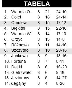 Wydarzeniem kolejki było okazałe zwycięstwo Perkuna II nad niepokonanymi dotychczas rezerwami Gwardii. Wprawdzie prowadzenie objęli szczytnianie, ale później skutecznością błysnął zespół gospodarzy, w którego składzie znalazło się paru zawodników odgrywających ważną rolę w pierwszej drużynie. Goście musieli przez sporą część meczu grać w dziesięciu (czerwona kartka dla Gutowskiego, konieczność stanięcia w bramce zawodnika z pola), ale i tak rozmiary porażki dają do myślenia. Wciąż wysoko przegrywa przebudowana latem Wałpusza. Coś zacięło się także w Zrywie. Zespół z Jedwabna nieźle wszedł w sezon, ale teraz przegrał czwarty kolejny mecz. Z minionej kolejki nie mogą być również zadowolone rezerwy Omulwi. Okazałe zwycięstwo odniósł za to w derbach drugi zespół GKS-u. Aż cztery bramki w derbowym meczu zdobył Bartosz Deptuła.