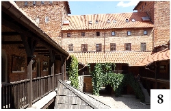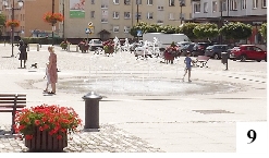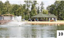Nidzica kojarzy się wielu osobom z zamkiem pokrzyżackim, usytuowanym na wzgórzu. To największa tego typu budowla na Mazurach, z bramą, wieżami, rozległym dziedzińcem, krużgankiem (fot. 8), czyli czymś, czego u nas nie uświadczymy. W tym roku znikła w Szczytnie fontanna, za to podczas spaceru po Nidzicy widzieliśmy aż dwa takie urządzenia: fontannę chodnikową na rynku (fot. 9) i wodotrysk na miejskim jeziorku (fot. 10) . Jak widzimy, przy tym niewielkim akwenie, zdecydowanie mniejszym od naszego Domowego Małego, usytuowana jest malutka plaża.