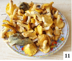 W ubiegłym tygodniu kilka razy (choć nie wszędzie) spadł deszcz, dlatego z ciekawości wybraliśmy się do lasu, by się przekonać, co we mchu piszczy – czyli czy pojawiły się grzyby. Dwie kurki (w naszym najlepszym miejscu) znaleźliśmy na samym początku lipca – i to było przez dwa tygodnie wszystko w tym sezonie. W minioną sobotę sytuacja dość wyraźnie się poprawiła. W swojej miejscówce między Sędańskiem i Janowem w ciągu parunastu minut zebraliśmy około stu kurek uzupełnionych dwoma podgrzybkami i maślakiem (fot. 11) . Na zimowe zapasy to jeszcze za mało, ale jeśli popada trochę więcej, może coś się z tego urodzi.