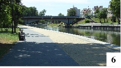 stron ścieżki pieszo-rowerowe ułatwiające dotarcie tu niezmotoryzowanym. Niedawno nadano nową jakość nabrzeżu rzeki Pisy, która w mieście jest dość szeroka i nadaje tej miejscowości charakter (fot. 6). Swoje robi też rynek w starym stylu, czego w Szczytnie brak – ale to już kwestia historii. Atrakcji w tym powiatowym mieście znajdziemy jeszcze kilka, chociażby zrewitalizowaną wieżę ciśnień, o której już swego czasu pisaliśmy. Atrakcją nie jest niewątpliwie zdezelowany budynek dworca kolejowego, mało estetycznego już w momencie powstawania (fot. 7) . Przy okazji modernizacji linii kolejowej nr 219 położono tylko nowe tory i wybudowano peron. Budynek czeka na szczęśliwego nabywcę. Podobny widok przedstawia pobliski niefunkcjonujący już dworzec autobusowy. Oba obiekty usytuowane są dość specyficznie – na samym początku/końcu miasta.