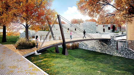 Obecna na uroczystości architekt Anna Mikulska-Bąk uzasadniała wybór takiej a nie innej koncepcji projektu. - Kiedy zaczynaliśmy pracę nad tematem zdawaliśmy sobie sprawę, że zamek jest w tej chwili prawie niezauważalny, szczególnie przez turystów. Często przypisują oni tę rolę ratuszowi. Dlatego zaproponowaliśmy odtworzenie bardzo istotnych elementów zamku - murów zewnętrznych, które dziś w dużej części są przykryte ziemią, a do tego w bardzo złym stanie – mówiła architekt. Niewątpliwą atrakcją będzie też wypełnienie fosy zamku wodą. - Ma to dać, z już istniejącymi ciągami spacerowymi, ciekawą przestrzeń publiczną – mówiła architekt. Łatwy dostęp do dziedzińca zamkowego, bez konieczności pokonywania schodów, umożliwi półkolista kładka nad fosą od ulicy Spacerowej. - Stanie się ona jednocześnie charakterystycznym elementem przyciągającym uwagę turystów.