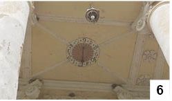 Jeszcze bardziej oryginalny zegar widzieliśmy podczas wakacyjnej wyprawy na północne rubieże naszego województwa. Oryginalny jest już sam obiekt, który stanowił jeden z celów wyjazdu – to XVIII-wieczny pałac w Drogoszach niedaleko Korsz. Długość budowli równa się mniej więcej długości boiska piłkarskiego i wynosi blisko 100 metrów (fot. 5). Czas od lat biegnie tu jakby inaczej. Kiedyś była to siedziba szlacheckiego rodu, tuż po drugiej wojnie znalazły tu biura NKWD, potem w pałacowym gmachu utworzono Ośrodek Szkolenia Rolniczego. Od jakiegoś czasu niszczejący pałac wraz z przyległościami znajduje się w prywatnych rękach, ale na planowaną zamianę obiektu w ekskluzywny hotel przyjdzie jeszcze poczekać – o ile ktoś się tego doczeka. Wspomniany nietypowy zegar znajduje się wejściem głównym – na ścianie… sufitowej (fot. 6). Oczywiście nie chodzi…