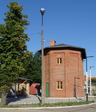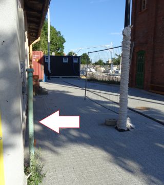 Spod wieży usunięto nie najlepiej się prezentującą ogrodzenie, wytrzebiono roślinność, oktagonalny obiekt obłożono kosztowną kostką granitową i krawężnikami sprawiającymi wrażenie trudnych do zniszczenia. Całość wyglądałaby prawie jak skwer przed dworcem w szanującym się mieście zachodniej Europy, gdyby nie pewne szczegóły. Ogrodzenie, owszem, zlikwidowano, ale pozostał po nim jeden słupek, stojący tuż przy sąsiadującym z wieżą budynku (fot.11). Średnio urodziwe ściany owego budynku (mieścił w nim się kiedyś posterunek kolejowy MO), tworzą ostry kontrast z eleganckim sąsiedztwem.