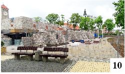 Zasadzony tutaj m.in. winobluszcz pięciolistkowy, gdy się rozrośnie, będzie wkrótce prezentował się bardziej efektownie. Nad duże jezioro powrócił król z dwiema innymi rzeźbami schowanymi na zimę magazynach MOS-u (fot. 8). Poprawa nastąpi także w naszym zapuszczonym miniamfiteatrze przy MDK-u. Zdemontowano obciachowe, rozpadające się siedziska, wymalowano pod nimi wsporniki (fot. 9) i tylko czekać na pierwsze występy w tym miejscu.