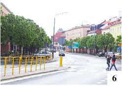 Wiechcie wiechciami, ale nie da się ukryć, że w maju Szczytno wyraźnie wyładniało. To efekt zgrania w czasie trwającego jeszcze czyszczenia z piachu ulic, odmalowywania pasów, uzupełniania ubytków w jedni, dodawania pewnych nowych elementów oraz odżywania miejskiej przyrody. Ulice z soczystą zielenią prezentują się znacznie lepiej, niż jeszcze kilka tygodni temu (fot. 6). Na widocznych na zdjęciu żółtych barierkach rozdzielających część ul. Odrodzenia zamontowano wsporniki pod donice z kwiatami. Być może, gdy „Kurek” będzie już w druku, nad barierkami zrobi się kolorowo. Zapobiegliwie nie umieszczono wsporników przed samym przejściem dla pieszych – kwiaty ograniczają tu jednak widoczność. Czerwone pelargonie na ulicach znamy już z lat wcześniejszych, w Szczytnie pojawiło się także parę nowości. Do takich należą np. ekologiczne dodatki do kilku przystanków komunikacji miejskiej. Skrzynki z roślinnością dostawiono najpierw do jednej z wiat na ul. Odrodzenia, a później umieszczono je także na innych przystankach w śródmieściu, jak choćby na ul. Kościuszki (fot.7) .