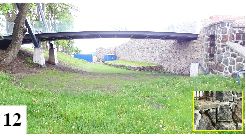Najmniej zmian nastąpiło chyba od strony ul. Spacerowej. Jeszcze w tamtym roku przerzucono tam kładkę nad fosą, ale pod samymi murami krajobraz mamy jak dawniej (fot.12) . Jak widać, nieco różnią się od siebie stylistycznie sposoby łączenia kamieni w części zamkowej i krótkiej przybudówce ze schodami skrytymi za niższą ze ścian. W spoinie pod niby-wejściem jest ponadto trochę ubytków, które warto by przy okazji tego typu inwestycji zwyczajnie uzupełnić.{/akeebasubs}