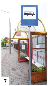 Wiechcie wiechciami, ale nie da się ukryć, że w maju Szczytno wyraźnie wyładniało. To efekt zgrania w czasie trwającego jeszcze czyszczenia z piachu ulic, odmalowywania pasów, uzupełniania ubytków w jedni, dodawania pewnych nowych elementów oraz odżywania miejskiej przyrody. Ulice z soczystą zielenią prezentują się znacznie lepiej, niż jeszcze kilka tygodni temu (fot. 6). Na widocznych na zdjęciu żółtych barierkach rozdzielających część ul. Odrodzenia zamontowano wsporniki pod donice z kwiatami. Być może, gdy „Kurek” będzie już w druku, nad barierkami zrobi się kolorowo. Zapobiegliwie nie umieszczono wsporników przed samym przejściem dla pieszych – kwiaty ograniczają tu jednak widoczność. Czerwone pelargonie na ulicach znamy już z lat wcześniejszych, w Szczytnie pojawiło się także parę nowości. Do takich należą np. ekologiczne dodatki do kilku przystanków komunikacji miejskiej. Skrzynki z roślinnością dostawiono najpierw do jednej z wiat na ul. Odrodzenia, a później umieszczono je także na innych przystankach w śródmieściu, jak choćby na ul. Kościuszki (fot.7) .