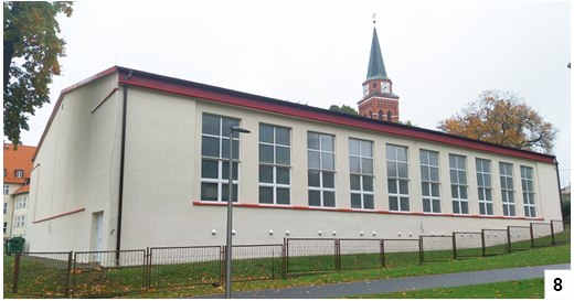 Hala sportowa przy Zespole Szkól nr 1 w Szczytnie powstała mniej więcej ćwierć wieku temu. Była w zasadzie pierwszym tego typu obiektem w mieście, który oprócz boisk do gier posiada trybuny. Po latach przyszedł czas (a był już najwyższy) na modernizację elewacji. Roboty – w wyniku przetargu - zlecono firmie MEZARIST z Olsztyna. Prace kosztowały ponad 150 tys. złotych. Przed remontem ściany wyglądały jak na fot. 7, teraz prezentują się zdecydowanie lepiej (fot. 8) i są kolorystycznie zgrane z odnowioną w ubiegłym roku elewacją budynku szkoły.