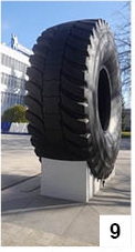 Leżące bez ładu i składu opony funkcji estetyzującej otoczenie raczej nie pełnią. Jeszcze do niedawna całkiem popularne było np. wbijanie opon do gruntu – gdzieś tak do połowy. O próbach robienia z opon pojemników na śmieci czy siedzisk swego czasu pisaliśmy. Przypomniała nam się pewna opona z Olsztyna, która od iluś już lat zwraca uwagę przechodniów i kierowców przemieszczających się przy fabryce Michelin. Znajduje się tam potraktowana pomnikowo ponoć największa opona na świecie o średnicy 4 m (fot. 9) . Te, których nie ulokowano na piedestale, są częścią składową pojazdów górniczych.