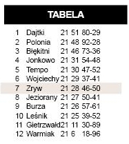 Są powody do zadowolenia – w nowym sezonie w klasie A zagrają dwa nasze zespoły z grupy III klasy B, dla których będzie to debiut na tym szczeblu. Przed tygodniem awans zapewniła sobie Wałpusza, która rozgromiła w zaległym spotkaniu rezerwy drużyny z Dajtek. Olsztynianie nie poradzili sobie także w niedzielę z GKS-em, choć wcześniej byli dla szczytnian niewygodnym przeciwnikiem. Goście wygrali gładko, a na szczególną uwagę zasługuje efektowny gol przewrotką zdobyty przez Szpakowskiego. Imponować mogą rozmiary zwycięstwa Wałpuszy nad autsajderem z Barczewa. Do przerwy było „skromne” 3:0, ale po zmianie stron gole zaczęły padać hurtowo. Ciekawym zwieńczeniem sezonu będą niedzielne derby pomiędzy obiema najlepszymi drużynami rozgrywek (boisko w Lemanach).