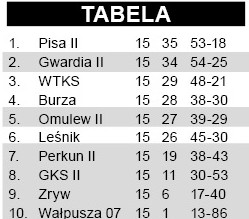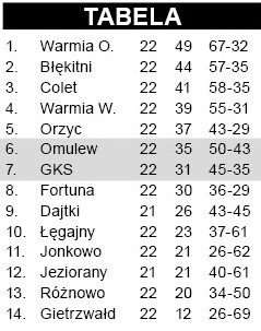 Lider i pewny do niedawna kandydat do awansu musiał przełknąć w Dźwierzutach gorzką pigułkę. Perkun powalczył z GKS-em już jesienią w Stawigudzie. Wtedy minimalnie przegrał, ale chyba mało kto wierzył, że osłabiona kadrowo drużyna z Orzyn zrewanżuje się faworytowi. Tak się jednak stało. W pierwszej połowie bramkarza gości dwukrotnie zaskoczył Arkadiusz Żebrowski, który przypomniał, że bramki strzelać potrafi. Dwa sezony wstecz, gdy Perkun walczył jeszcze w klasie B, do siatki trafiał zresztą hurtowo. Po zmianie stron przyjezdni postanowili za wszelką cenę odrobić straty, trafili jednak na wyjątkowo walecznych w tym dniu rywali. Marcin Marszałek skapitulował tylko raz. Osiągnięcie celu piłkarze Perkuna okupili otrzymaniem aż pięciu żółtych kartek – ale warto było. Niezależnie od tego, czy orzynianie otrzymają się w okręgówce, wspomnienia związane z pokonaniem lidera będą bezcenne.