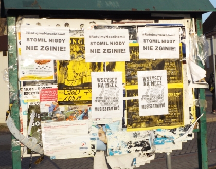 W ubiegłym tygodniu tablice ogłoszeń w Szczytnie zostały zapełnione kartkami zachęcającymi do przybycia do Olsztyna na pierwszy wiosenny mecz ligowy tamtejszego Stomilu (fot. 9). Zespół ze stolicy regionu ma swoich zagorzałych sympatyków także w Szczytnie – i stąd ten apel. Stomil był kiedyś wprawdzie rywalem naszej Gwardii w III lidze, później nadeszły jednak lata tłuste i przez kilka sezonów reprezentował województwo w najwyższej klasie rozgrywkowej. Klub, nazywany Dumą Warmii, od paru ładnych lat boryka się z olbrzymimi trudnościami finansowymi. W tym sezonie również. Kilka pomysłów spaliło na panewce i na kilka dni przed spotkaniem z GKS-em Tychy nie było wiadomo, czy będzie skład na sobotni pojedynek. Sztuka ta się udała, Stomil wygrał 2:0, a kibice ze Szczytna dołożyli swoją cegiełkę do klubowych finansów.