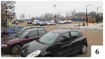 Parking przy odnowionym dworcu kolejowym w Szczytnie oddano do użytku w pierwszych dniach bieżącego roku, ale bardzo szybko znalazł swoich użytkowników. Wieść o nowej dobrej miejscówce rozniosła się szybko i chętnych do zaparkowania nie brakuje, zwłaszcza w środku tygodnia. Przekonuje o tym fot. 6 . Poza kadrem znajdują się miejsca postojowe dla rowerów – i też są w niemałym stopniu zastawione.