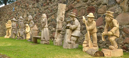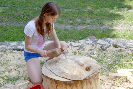 Niedawno pisaliśmy o plenerze rzeźbiarskim odbywającym się w zamkowej fosie. Tam, gdzie niegdyś noszono się z zamiarem wybudowania miniaturowego amfiteatru. Na jego niedoszłej scenie pyszni się teraz cała gromada, nie tylko panów, ale i pań zajmujących się podbieraniem miodu z barci. Przy okazji rzeźbiarskiego bakcyla złapali też młodzi entuzjaści pracy z dłutem w ręku, w tym Ewa, która przyjechała do Szczytna na wakacje z Piaseczna. Postanowiła