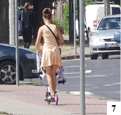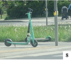 Popularnym środkiem lokomocji, znanym już jakiś czas temu, stała się ostatnio hulajnoga. W Szczytnie spotkamy je znacznie częściej niż jeszcze parę lat wstecz (fot. 7) . Nowszym wariantem są hulajnogi elektryczne, na których teoretycznie można rozwijać większe prędkości. Teoretycznie, ponieważ pojawiające się zmiany w przepisach ruchu drogowego narzucają pewne ograniczenia dotyczące zarówno prędkości, jak i innych spraw związanych z przemieszczaniem się na hulajnogach. Niestety, całkiem często widzimy sporą niefrasobliwość użytkowników tych pojazdów, którzy na chodniku lekceważą pieszych, przejeżdżają po pasach, a na ulicy zapominają o sygnalizowaniu skrętu. Prawdziwy wysyp hulajnóg elektrycznych zobaczymy w stolicy naszego województwa. Jak podała niedawno TVP 3 Olsztyn, do szpitala dziecięcego trafia tygodniowo około 10 osób, które miały wypadek na hulajnodze. Inna sprawa to nieszanowanie wypożyczanego na czas sprzętu i zostawianie go w dziwnych miejscach. Być może za jakiś czas elektryczne hulajnogi do wypożyczania zafunduje i nasze miasto. Pozostaje mieć nadzieję, że użytkownicy nie będą ich zostawiali np. tuż przed pasami, co w Olsztynie nie jest rzadkim obrazkiem (fot. 8).