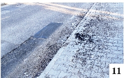 Zasady organizacji pracy przy wycince na ul. Skłodowskiej-Curie przywodzą nam na myśl częsty sposób prowadzenia innych robót w Szczytnie i nie tylko. Sprzątamy ulice? Usypujemy pryzmy zmiatanego piachu co paręnaście metrów, a kilka dni później ktoś po nie przyjedzie – o ile wiatr nie rozwieje. Łatamy dziurawe ulice? Pokruszone resztki asfaltu wyrzucamy na chodnik – i niech sobie ktoś w wolnym czasie sprzątnie (fot. 11). Ten ostatni obrazek uchwyciliśmy ostatnio na łatanej kilkakrotnie tej zimy ul. Bohaterów Westerplatte, ale to jest w zasadzie normą obejmującą podobne prace drogowe.{/akeebasubs}