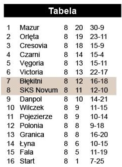 SKS Novum: Arasimowicz, Horoszkiewicz, Czarnecki (30. Piórkowski), Cikacz, Nowakowski, Lech (76. Kulesik), Kuchna, Pietrzak, Filipiak (80. Pogorzelski), Augustyniak, Magnuszewski.