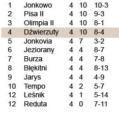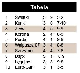 KP Purda – Dajtki Olsztyn 5:1, Korona Klewki – SKF Kunki 6:1. Pauzowały: Euro-Car Wrzesina, Świątki Skolity.