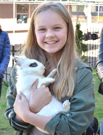 Nam oprócz jedynaka króliczka spodobał się też inny duży pies Roxy, którego na wystawę przyprowadziła Monika Horodyska, mieszkanka Szczytna, uczennica gimnazjum sportowego. Jej pupil został właśnie kilka lat temu zaadoptowany ze schroniska „Cztery Łapy”. Uwielbia biegać, więc oboje, psa i panią, łączy sportowa pasja.