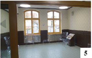 Przed remontem dworcowy budynek był użytkowany przez kilka podmiotów prowadzących różną działalność. W tej chwili z obiektu korzystają tylko podróżni. Mają oni do swej dyspozycji m.in. parę toalet, co powinno być standardem już ileś lat temu. W sytuacjach szczególnych można skorzystać ze znajdującego się w widocznym miejscu defibrylatora. Warto dodać, że budynek jest strzeżony, co powinno uniemożliwić dewastowanie go przez jakieś bezmyślnie zachowujące się osoby. Jak widać, coś w temacie ruszyło. Zatrzymał się jednak czas – zegar nad głównym wejściem niezmiennie od miesięcy pokazuje godzinę 7.47 – rano lub wieczorem (fot. 7).
