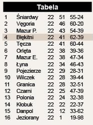 - Łatwo nie było – podsumowuje trener Mariusz Korczakowski. - Pierwsza połowa była dla Giżycka, druga dla nas. Mieliśmy trochę więcej szczęścia i wygraliśmy. Wielbarski szkoleniowiec wyróżnił w tym meczu... sędziego, do którego nie miał pretensji nawet o przedłużenie spotkania o 5 minut.