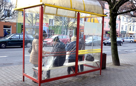 mniej bacznych spacerowiczów niemiłym prezentem spadającym z góry. Niestety, choć z chwilą zapalenia lampek ptaki podniosły wrzask i wzbiły się w powietrze, to po niedługiej chwili znów powróciły na swoje nocne siedliska. Jedno z nich jest usytuowane pechowo tuż obok przystanku miejskiej komunikacji i jeśli ktoś akurat nie skrył się pod wiatą, może tego mocno żałować. No i jak potem wejść do autobusu? Tutaj też zauważamy niemiły zgrzyt. Wokół roztaczają się świąteczne widoki, a we wiacie przystankowej wandale rozbili tylną ściankę. Teraz cała jej lewa część (patrząc na zdjęcie) jest do wymiany.